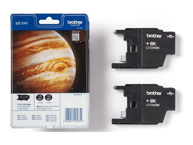 Brother LC1240 Twin-Pack - 2-pack - svart - original - blister med akustiskt / elektromagnetiskt alarm - bläckpatron - för Brother DCP-J525W, DCP-J725DW, DCP-J925DW