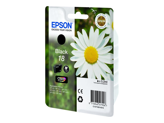 Epson 18 - 5.2 ml - svart - original - bläckpatron - för Expression Home XP-212, 215, 225, 312, 315, 322, 325, 412, 415, 422, 425 C13T18014010
