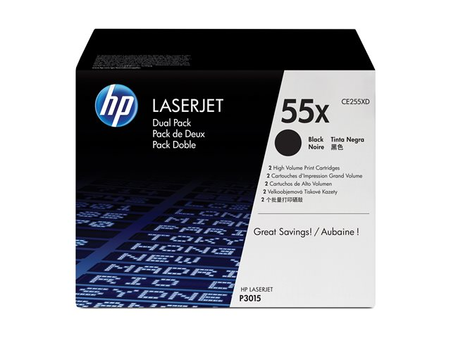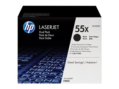 HP 55X - 2-pack - Lång livslängd - svart - original - LaserJet - tonerkassett (CE255XD) - för LaserJet Enterprise MFP M525; LaserJet Enterprise Flow MFP M525; LaserJet Managed MFP M525 CE255XD