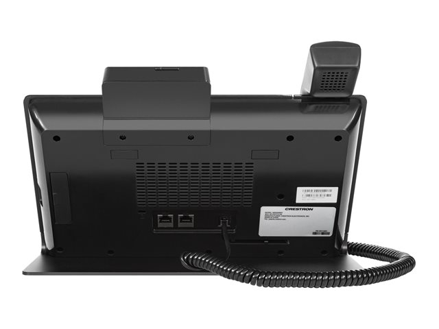 The Crestron Flex UC-P10-T-C-HS-I desk phone provides a premium video collaboration solution for use with the Microsoft Teams intelligent communications platform. It offers Full HD quality video and audio calling, capability to view and zoom the shared content, and full-duplex hands-free speakerphone capability in an elegant desktop design. It features a large 10 in. color touchscreen display, built-in Full HD camera with privacy shutter, hearing aid compatible handset, and wired or Bluetooth enabled headset support. The phone can be synced with a Microsoft Teams account, with contacts, schedules, voice mails, and other preference settings appearing on the phone's touchscreen.
