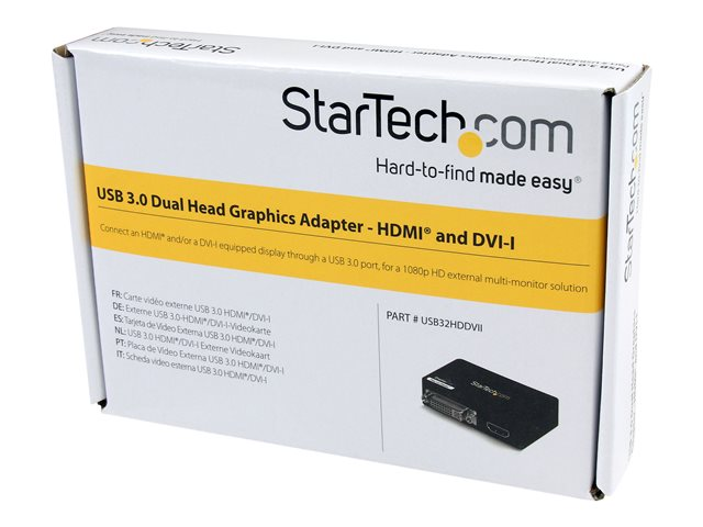 StarTech.com USB 3.0 till HDMI / DVI-adapter - 2048x1152 - Videokort - TAA-kompatibel - USB Type B hona till DVI-I, HDMI hona - svart - 2048 x 1152-stöd 60 Hz - för P/N: HDDVIMM3, HDMM12, HDMM15, HDMM1MP, HDMM2MP, HDMM3, HDMM3MP, HDMM50A, HDMM6, HDPMM50 USB32HDDVII