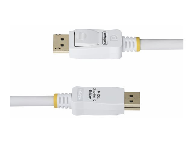StarTech.com 10ft White VESA Certified DisplayPort 1.2 Cable with Latches - DisplayPort-kabel - DisplayPort (hane) spärrad till DisplayPort (hane) spärrad - DisplayPort 1.2 - 3 m - halogenfri, passiv, 4K60Hz stöd, 1080p stöd 240 Hz, 2K144Hz stöd - vit DP12-CABLE-10FTW