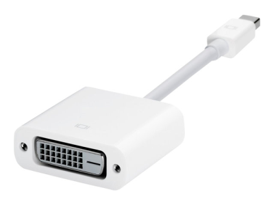 Använd Mini DisplayPort till DVI-adaptern för att ansluta en avancerad digital bildskärm, t.ex. en 20- eller 23-tums Apple Cinema Display, som är utrustad med en DVI-kontakt. Läs dokumentationen eller kontakta bildskärmstillverkaren för att se till att du väljer rätt adapter.