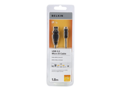 The Belkin USB-to-Micro USB Cable is engineered to support the micro-USB standard in data transfer speeds and compatibility. It connects a computer to newer mobile phones or other USB devices using a micro-B connection.