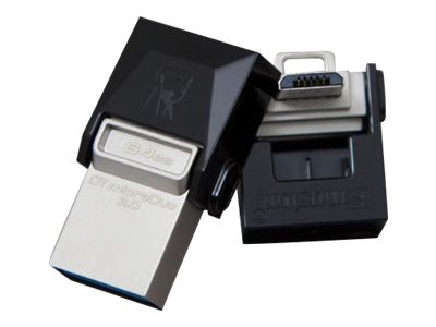 Kingston's DataTraveler microDuo Flash drives provide additional storage in a small, convenient form factor for tablets and smartphones that support the USB OTG (On-The-Go) functionality. The USB OTG standard allows mobile devices to directly connect to supported USB devices. DataTraveler microDuo Flash drives allow microUSB ports, often used for charging devices, to be used as expansion ports for additional storage. Ideal for storing large files while traveling, DTDUO gives plug-and-play functionality to tablets and smartphones without microSD ports at a lower price per GB than the extra built-in storage on a mobile device. With smartphones and tablets recording HD video and taking higher resolution photos, space on these devices gets used up faster than ever. DTDUO Flash drives let users move files, photos, videos and more - without plugging into a PC - to offload or backup content. Sharing large files between mobile devices is easier than using online cloud services, and there's no need for a cable to transfer data between the device and a PC.