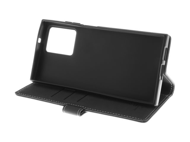 Insmat - Vikbart fodral för mobiltelefon - genuint läder, kartong+papper+aluminiumfolie, termoplastisk polyuretan (TPU), bomullssömmar - svart - för HMD Skyline 650-3271