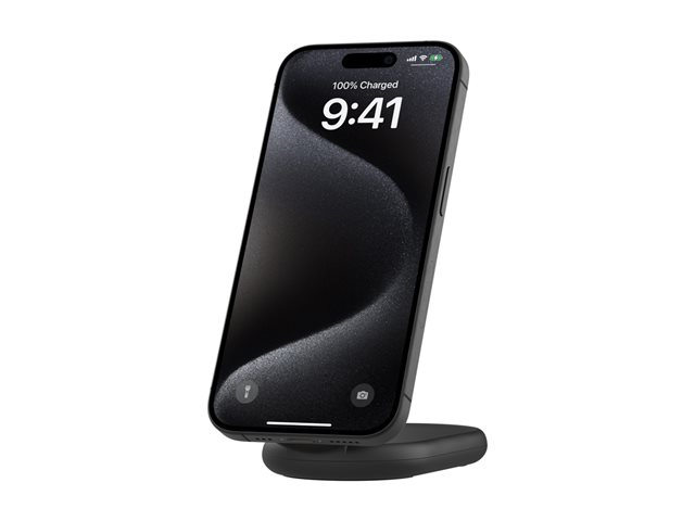 Belkin BoostCharge - Trådlöst laddställ - magnetisk, hopfällbar, med Qi2 + växelströmsadapter - 15 Watt - 3 A - Fast Charge, Strömmatning 3.1 - svart WIB007VFBK