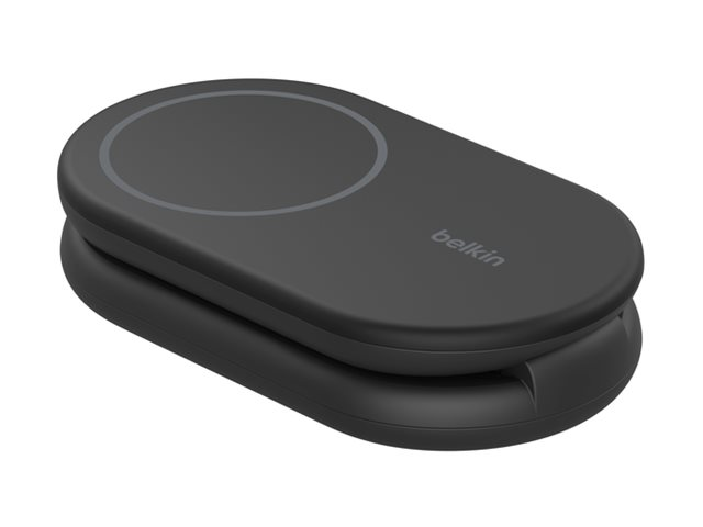 Belkin BoostCharge - Trådlöst laddställ - magnetisk, hopfällbar, med Qi2 + växelströmsadapter - 15 Watt - 3 A - Fast Charge, Strömmatning 3.1 - svart