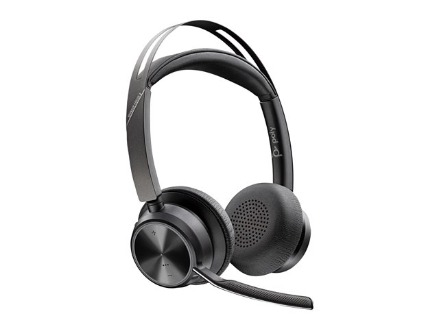 HP Poly Voyager Focus 2 - Headset - på örat - Bluetooth - trådlös, kabelansluten - aktiv brusradering - USB-C via Bluetooth-adapter - svart 77Y89AA