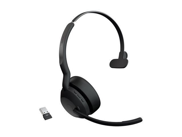 Jabra Evolve2 55 UC Mono - Headset - på örat - Bluetooth - trådlös - aktiv brusradering - USB-A - svart - Zoomcertifierad, Certifierad för Microsoft-teams, Cisco Webex Certified, Optimerad för UC, Alcatel-Lucent-certifierad, Avaya-certifierad, Unify-certifierad, MFi-certifierad, Google Meet-certifierad, Amazon Chime-certifierad, Google Fast Pair-certifierad 25599-889-999