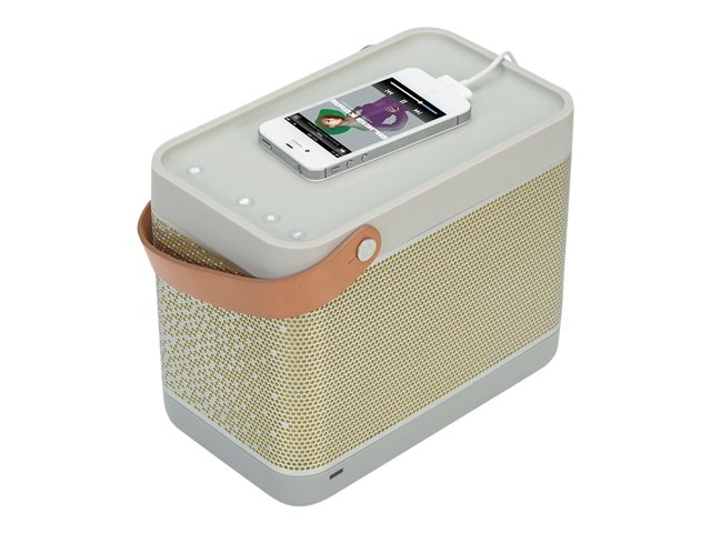 • Plays and charges iPhone or iPod through USB
