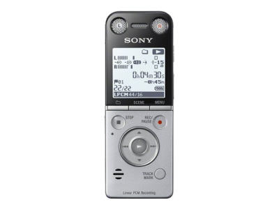 ICD-SX733 röstinspelare på 4 GB med riktad mikrofon. Inspelningar i cd-kvalitet utmärkt för affärer och livemusik. Inspelningskvalitet som ligger nära originalet. Placering av mikrofonen för centrerad inspelning och stereoinspelning. Spela in ljud på större avstånd.