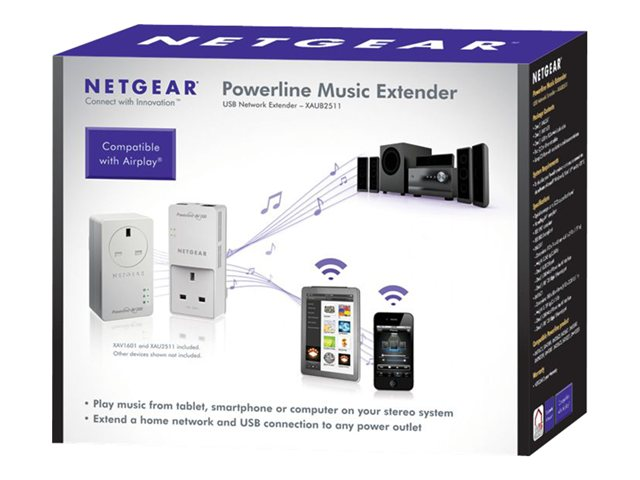 The NETGEAR Powerline XAUB2511 is a networking solution designed to enhance your home's connectivity. With a data transfer rate of 200 Mbps, it provides fast and reliable access to the Internet, supporting activities from streaming HD video to online gaming. This device supports key standards such as HomePlug AV, IEEE 1901, and IEEE 802.3, ensuring compatibility with a broad array of devices. Whether you're using a Mac or PC, the XAUB2511 integrates seamlessly into your existing setup, offering Ethernet and USB connections for a versatile networking experience. Its wall-pluggable design means you can easily extend your network without the need for additional cables or professional installation. Experience a new level of Internet connectivity with the NETGEAR Powerline XAUB2511.