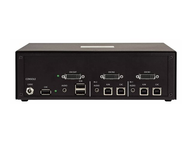 | Gränssnitt | 2 x DVI-D (dubbellänk) ingång hona 2 x USB-ingång Type B common access card (CAC) 2 x tangentbord/mus Type B 2 x ljudinmatning telefon stereo 3,5 mm hona 1 x DVI-D (dubbellänk) utgång 2 x USB-utgång Type A 1 x ljudutmatning telefon stereo 3,5 mm 1 x USB-utgång Type A vanlig åtkomstkort (CAC), för användare |