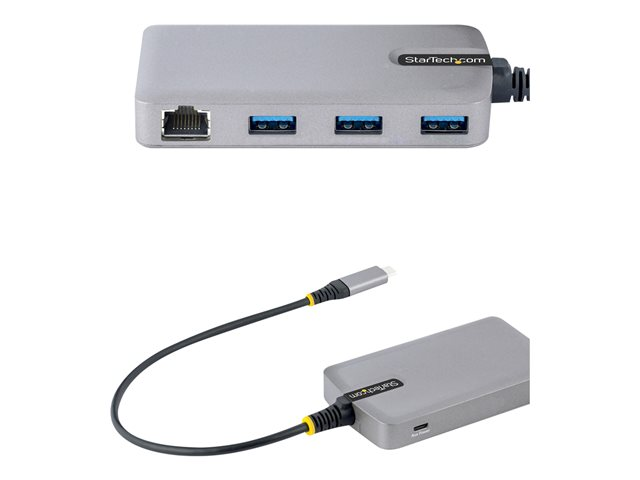 StarTech.com 3-Port USB-C Hub with Ethernet, 3x USB-A Ports, Gigabit Ethernet, USB 3.0 5Gbps, Bus-Powered, USB Type-C Hub w/GbE and 1ft/30cm Long Cable, Portable Laptop USB C Hub Adapter - USB Expansion Hub, RJ45 (5G3AGBB-USB-C-HUB) - Hubb - 3 x USB 3.2 Gen 1 + 1 x micro-USB + 1 x 10/100/1000 - skrivbordsmodell 5G3AGBB-USB-C-HUB