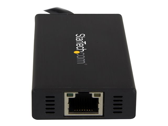 StarTech.com Bärbar USB 3.0-hubb med 3 portar plus Gigabit Ethernet - aluminium med inbyggd kabel - Hubb - 3 x SuperSpeed USB 3.0 + 1 x 10/100/1000 - skrivbordsmodell - för P/N: PEXUSB3S2EI, PEXUSB3S42, PEXUSB3S7, SVA5H2NEUA