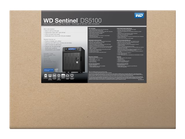 The WD Sentinel DS5100 is a complete, fully configured solution with automatic backup and restore software for up to 25 users and 50 computers, all at a very affordable price. By combining a single solution for both storage and server requirements, the WD Sentinel DS5100 is a great solution for any small business looking for their first server.