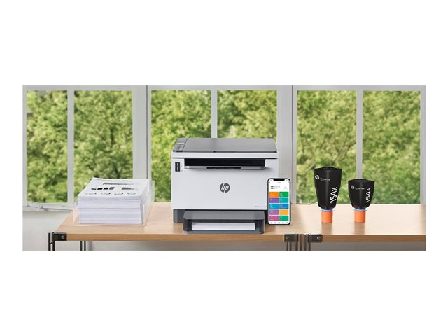 Upptäck företagsanpassade funktioner och besparingar med HP LaserJet Tank MFP 2604dw allt-i-ett-skrivare som levereras förfylld med HP-originaltoner för upp till 5000 sidor.