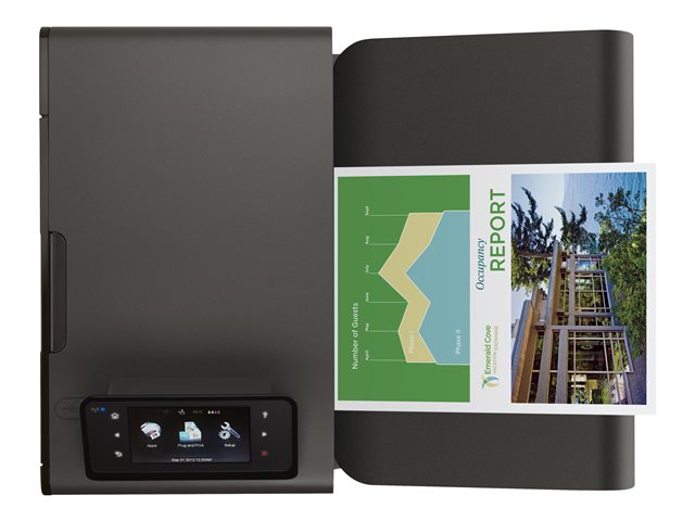 - Tryck och svep på 4,3-tums färgpekskärmen för att snabbt skriva ut och komma åt tidsbesparande företagsappar.