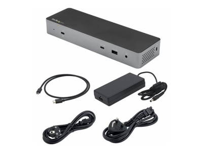 En högpresterande Thunderbolt™ 3-certifierad dockningsstation med USB Type-C®-kompatibilitet för dubbla skärmar 4K 60Hz DSC-stöd från antingen dubbla DisplayPort 1.4- eller dubbla HDMI 2.0-videoutgångar, 96 W strömförsörjning (100 W toppeffekt), 5 x USB 3.2-hubb med 2x BC 1.2 snabbladdningsportar, Gigabit Ethernet och headsetportar. Flexibla utgångar för dubbla skärmar Denna universella dockningsstation har både dubbla DisplayPort 1.4 (Single 8K30 på HBR3-värd) och dubbla HDMI-videoutgångar som kan konfigureras på tre olika sätt: DisplayPort + DisplayPort: HDMI + HDMI DisplayPort + HDMI Upplösningar och videoutgångar är värdberoende. Värdutgång DCS-status Enkel video Dubbel video Thunderbolt med DP 1.4 (nVidia Graphics) Av 8K (7680 x 4320) vid 30 Hz (endast DP) ej tillgängligt Thunderbolt med DP 1.4 (nVidia Graphics) Av ej tillgängligt 2x 4K (3840x2160) vid 60 Hz Thunderbolt med DP 1.4 (nVidia Graphics) På 4K (3840x2160) vid 144 Hz ej tillgängligt Thunderbolt med DP 1.4 (nVidia Graphics) På ej tillgängligt 2x 4K (3840x2160) vid 60 Hz Thunderbolt med DP 1.4 (Intel Graphics) ej tillgängligt 5K (5120x2880) vid 60 Hz (endast DP) ej tillgängligt Thunderbolt med DP 1.4 (Intel Graphics) ej tillgängligt ej tillgängligt 2x 4K (3840x2160) vid 60 Hz Thunderbolt med DP 1.2 ej tillgängligt 4K (3840x2160) vid 60 Hz ej tillgängligt Thunderbolt med DP 1.2 ej tillgängligt ej tillgängligt 2x 4K (3840x2160) vid 60 Hz USB Type-C DP Alternate Mode DP 1.4 Av 4K (3840x2160) vid 30 Hz ej tillgängligt USB Type-C DP Alternate Mode DP 1.4 Av ej tillgängligt 2x QHD (2560x1440) USB Type-C DP Alternate Mode DP 1.4 På 5K (5120x2880) vid 60 Hz (endast DP) ej tillgängligt USB Type-C DP Alternate Mode DP 1.4 På ej tillgängligt 2x 4K (3840x2160) vid 60 Hz USB Type-C DP Alternate Mode DP 1.2 ej tillgängligt 4K (3840x2160) vid 30 Hz ej tillgängligt USB Type-C DP Alternate Mode DP 1.2 ej tillgängligt ej tillgängligt 2x 1080p (1920x1080) vid 60 Hz Fler USB-portar nedströms Med sin integrerade USB 3.2-hubb har denna dockningsstation 5 USB-portar nedströms: Framsida: 1x USB 3.2 Gen 2 Type-C (10 Gbit/s) med 15 W (3 A, 5 V) laddning 1x USB 3.2 Gen 2 Type-A (10 Gbit/s) med B.C. 1.2 snabbladdning Baksida: 2x USB 3.2 Gen 1 Type-A (5 Gbit/s) 1x USB 3.2 Gen 2 Type-C (10 Gbit/s) Enkel att installera och hantera Denna universella Thunderbolt 3/USB-C-dockningsstation har en automatisk drivrutinsinstallation och inkluderar en 0,8 meter lång Thunderbolt 3-värdkabel, framåtriktad TB3/USB-C-värdport, framåtriktad LED-indikator, monteringshål för valfritt fäste, k-plats för säkerhetslås och MAC address changer-verktyg Transparens för anslutna enheter med StarTech.com MAC Address Changer Utility TB3CDK2DHUE innehåller en kostnadsfri Windows -applikation för bättre hantering av ditt företags nätverkssäkerhet. När du ansluter till ditt nätverk via Ethernet-porten på dockningsstationen, sänds datorns MAC-adress vanligtvis inte till nätverket, eftersom ditt nätverk bara ser dockningsstationens MAC-adress. StarTech.com MAC Address Changer eller kloningsprogramvaran gör det dock möjligt för USB-C-dockningsstationen att använda MAC-adressförfalskning av den anslutna bärbara Windows-datorn snarare än MAC-adressen för själva dockningen. Detta säkerställer att dina nätverksadministratörer har full insyn i varje enhet i nätverket och kan övervaka och begränsa aktiviteten i enlighet därmed. Om du vill begära åtkomst till vårt MAC Address Changer-verktyg, ska du kontakta vår tekniska supportavdelning per telefon, livechatt eller e-post. TB3CDK2DHUE täcks av StarTech.coms livstidsgaranti och gratis livstidsgaranti på teknisk support.