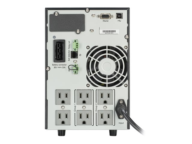 EgenskaperAdvance Battery Management (ABM), hotswap-batterier, LCD-bildskärm, dubbel konvertering, 3-stegsladdning